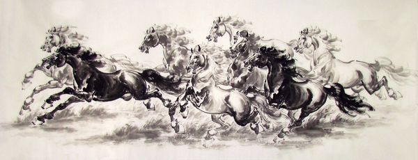 畫中肆意奔騰的駿馬,一日千里。畫出了徐悲鴻的八駿圖所體現(xiàn)的釋放的力量、超越的靈魂、顯示的氣度。是一幅****的八駿圖精品。