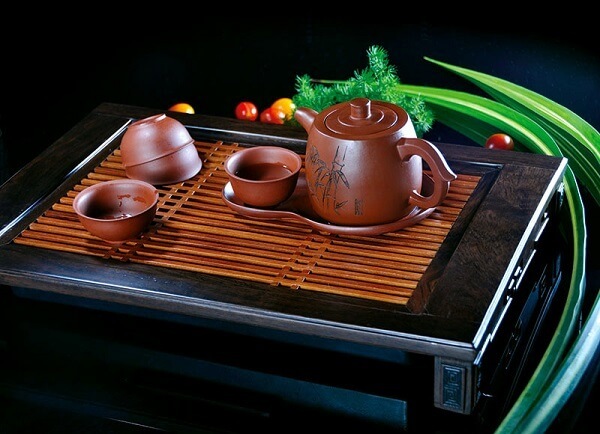 茶盤:茶盤:放置茶壺、茶杯、茶道組、茶玩乃至茶食的淺底器皿,承接泡茶過程中流出或倒掉的水。