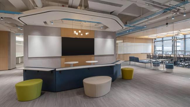 在當(dāng)代辦公方式中,工作的場景其實是在模糊化和多變的。會議室既可以用來承接內(nèi)部開會功能,又能接待訪客;休閑區(qū)不僅僅滿足員工休閑需求,同時又是滿足員工協(xié)同、靈感溝通的重要場景。