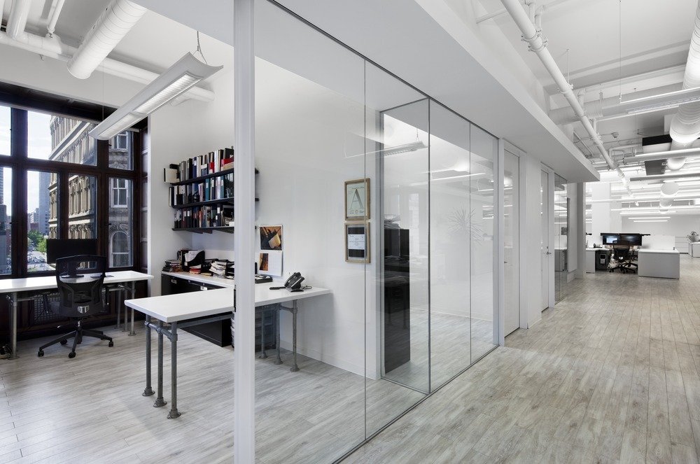設(shè)計(jì)通過(guò)對(duì)橫向與豎向的空間微妙把握,傳達(dá)出將過(guò)去與現(xiàn)在結(jié)合在一起的建筑美學(xué)。室內(nèi)的改造清除之前翻修時(shí)增加的所有隔墻,以恢復(fù)空曠的建筑空間。室內(nèi)僅以優(yōu)雅的家具陳設(shè)來(lái)點(diǎn)綴建筑空間??諘绱髲d內(nèi)的每個(gè)工位除了讓員工擁有獨(dú)立的工作空間更是為了促進(jìn)組員間的工作交流,臨時(shí)會(huì)議區(qū)就近設(shè)在員工工位旁。整個(gè)樓面由開(kāi)放空間組成,以此來(lái)強(qiáng)化建筑自身的結(jié)構(gòu)美感:華麗的柱式和頂面,裝飾線條與木飾面。銀行的金庫(kù)位于一樓,現(xiàn)用于圖書(shū)室。