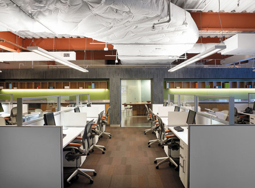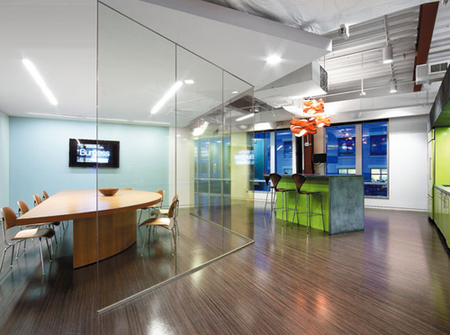 茶水區(qū)與工作區(qū)之間的通道裝飾墻。