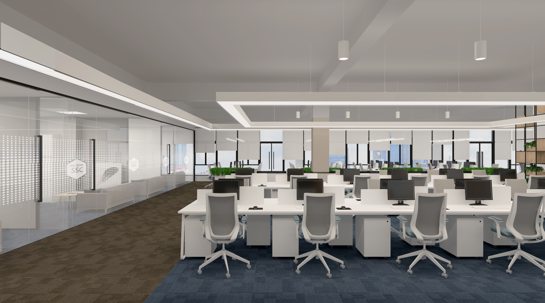 項(xiàng)目名稱:灝軒智能科技上??偛啃罗k公室裝修效果圖案例? 項(xiàng)目地址:金領(lǐng)谷科技園21號(hào)樓??面積:2900平