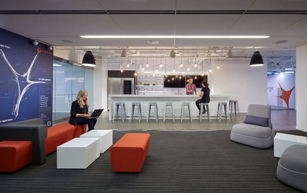 上海裝修公司-康藍(lán)裝飾今天要與大家分享的是,巧妙地利用動感光波營造辦公環(huán)境的辦公室裝修設(shè)計(jì)。設(shè)計(jì)師為其打造了一個充滿能量和動感活力的辦公室,以繼續(xù)保持不斷增長的無限潛力。設(shè)計(jì)師以此為設(shè)計(jì)核心,擴(kuò)建了一個新空間以補(bǔ)充和強(qiáng)化近期剛完成的改造工程。