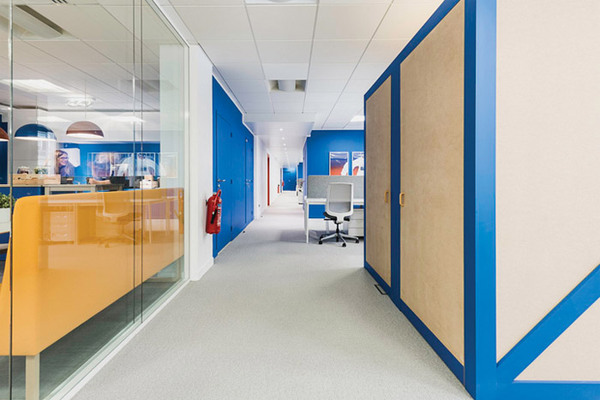 電子商務(wù)公司辦公室的品牌標(biāo)志多與顏色有所關(guān)聯(lián),在辦公區(qū)域設(shè)計(jì)的時(shí)候,設(shè)計(jì)師采用了由淺至深的顏色分布,表現(xiàn)企業(yè)的陽(yáng)光積極,這也表現(xiàn)電子商務(wù)行業(yè)公司辦公室裝修的時(shí)尚元素。