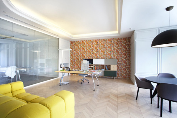 洽談室的設(shè)計(jì),設(shè)計(jì)師采用了白色、灰色、黃色、黑色顏色之間的轉(zhuǎn)換,來體現(xiàn)洽談室的價(jià)值,人體對顏色很敏感,多種顏色經(jīng)過設(shè)計(jì)師的重新搭配,更顯得時尚、創(chuàng)新。