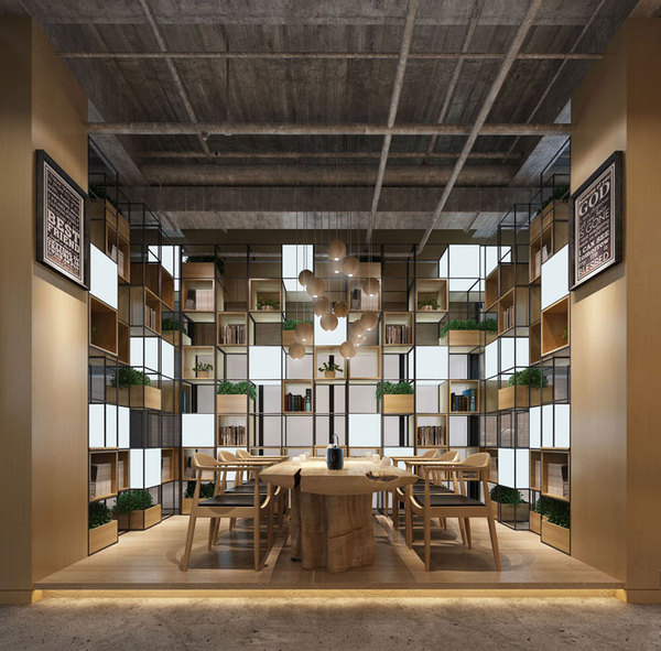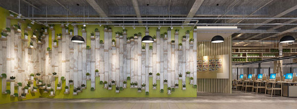 洽談區(qū)域的設(shè)計,設(shè)計師特意設(shè)計成綠意空間,設(shè)計師認為人們往往遠離大自然,因此需要在空間中多增添一些綠色,雖然面積有限,但能給交談提供一個很好的洽談環(huán)境。
