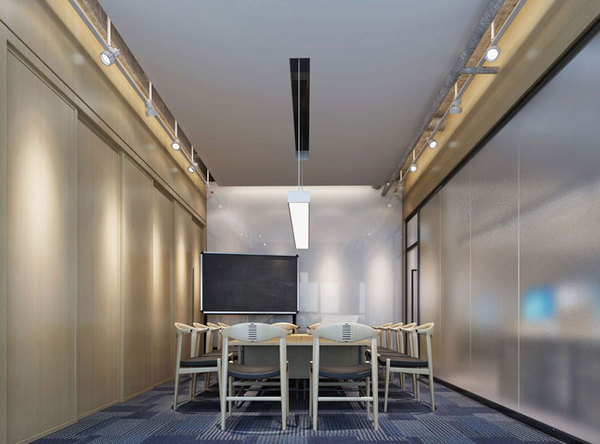 會議區(qū)辦公室的設(shè)計,設(shè)計師將光效弄得特別亮,很有潮氣活力,很有層次感,有由淺至深地了解一個品牌的寓意。