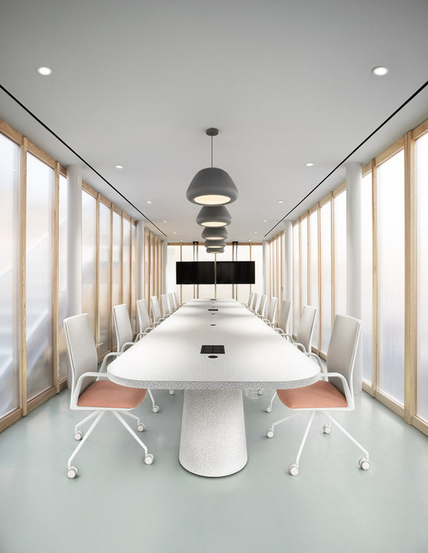 Gruppo Campari對(duì)于多倫多辦公室的設(shè)計(jì)要求十分簡(jiǎn)單,即創(chuàng)造一個(gè)充分體現(xiàn)公司精神并且可以激發(fā)使用者靈感的空間。Campari標(biāo)志性的海報(bào)有上百年歷史,種類豐富,充滿創(chuàng)意。建筑師從海報(bào)和食材中提取顏色、圖案以及形狀,并將它們層層重疊,直到形成一個(gè)平衡的三維空間。