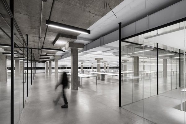 上面這個就是加拿大**奢侈品品牌SSENSE公司的辦公室裝修設(shè)計。在這里,灰色和光線整合,使得整個空間不再單調(diào)。無論是辦公室空間內(nèi)大量的玻璃隔斷還是超大的窗戶都能夠使得光線在這里充分發(fā)揮它的功能?;疑@個由略帶貶義的顏色卻和象征著積極樂觀形象的陽光在這個辦公空間不期而遇,整個空間便在這兩種元素的相互作用下變得柔和起來。