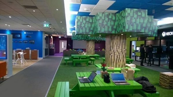 方塊積木一般的樹(shù),塊狀的藍(lán)天白云。這是什么,相信不用小編多說(shuō)了吧!這個(gè)Minecraft(我的世界)風(fēng)格的辦公室設(shè)計(jì)是微軟公司在英國(guó)的一家公司的辦公室設(shè)計(jì)。整個(gè)辦公室風(fēng)格都被設(shè)計(jì)成Minecraft風(fēng)的,置身于這樣的辦公室空間之中讓小編不僅想掄起斧頭砍下一塊材料收藏起來(lái)了呢。領(lǐng)企設(shè)計(jì):http://m.dongying8.cn/