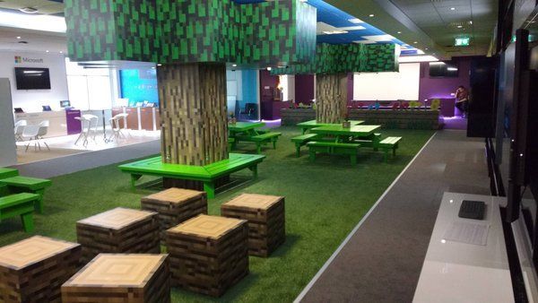 方塊積木一般的樹(shù),塊狀的藍(lán)天白云。這是什么,相信不用小編多說(shuō)了吧!這個(gè)Minecraft(我的世界)風(fēng)格的辦公室設(shè)計(jì)是微軟公司在英國(guó)的一家公司的辦公室設(shè)計(jì)。整個(gè)辦公室風(fēng)格都被設(shè)計(jì)成Minecraft風(fēng)的,置身于這樣的辦公室空間之中讓小編不僅想掄起斧頭砍下一塊材料收藏起來(lái)了呢。