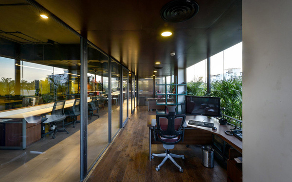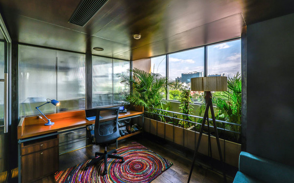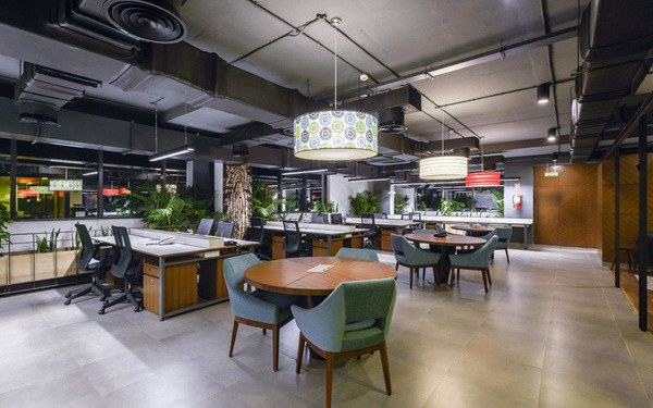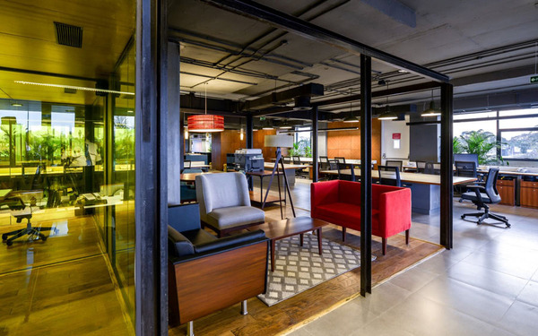 整體辦公室裝修設(shè)計以粗獷的大地色系配以隨處可見的綠色植物,營造如在戶外探險的氛圍,創(chuàng)建一個充滿活力的協(xié)作型工作環(huán)境。這些綠植和工位系統(tǒng)巧妙結(jié)合在一起,在長時間的工作環(huán)境里,偶爾瞥見近旁的植物,給眼睛帶來片刻的舒緩和休息。同時這樣的氛圍營造契合公司的品牌文化。有趣的設(shè)計元素,形成一個非常有趣的空間表達(dá)。更多辦公室裝修設(shè)計關(guān)注領(lǐng)企設(shè)計:m.dongying8.cn