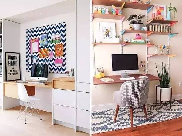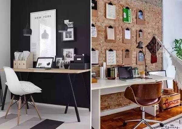 自由職業(yè)或是平時的工作沒有很強烈的需求的話,那就把它打扮的創(chuàng)意滿滿吧!像軟木墻或是任務墻這種墻面裝飾**是吸睛的打扮~