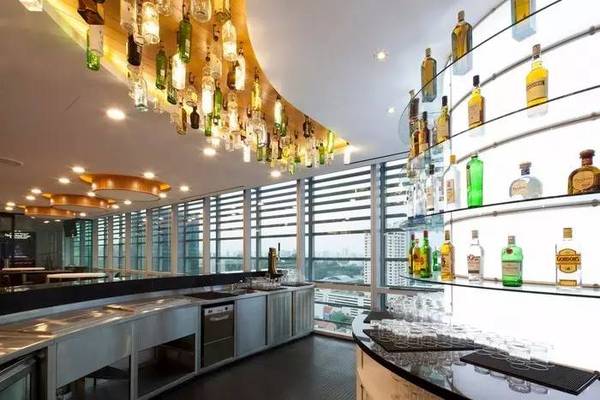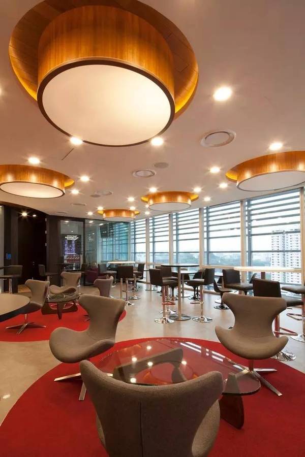 為了有效的利用空間,和**化的讓自然光透進室內(nèi),該辦公室采用了中間核心區(qū),外加周圍開放式的辦公區(qū)這一平面布局格式。開放式的區(qū)域里布置了流線型的工作區(qū),這樣的設(shè)計允許員工們自由的隨心移動辦公。天花板上裝飾著那些高檔酒水飲料的工作吧,就是非正式的辦公區(qū),那里還有一個咖啡吧,也是一個小小的休閑辦公區(qū)呢。