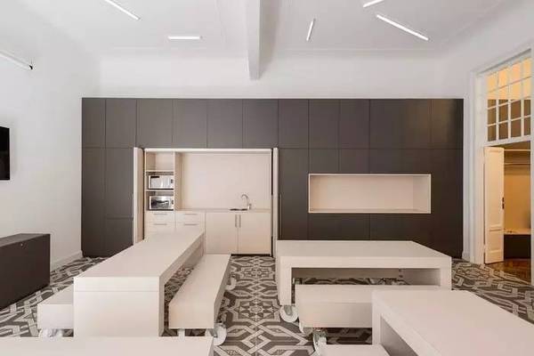 辦公空間分成了兩個(gè)不同的部分,一個(gè)是公共區(qū)域,一個(gè)是辦公區(qū)域。辦公室一層里設(shè)計(jì)布局有接待處,以及多功能區(qū),休息室的入口處就是前臺(tái),自助餐廳內(nèi)隱藏的廚房和木質(zhì)的滑輪座椅可以根據(jù)一天的需求而作相應(yīng)的變動(dòng)。二層則是設(shè)計(jì)規(guī)劃了一個(gè)大的開(kāi)放區(qū)、會(huì)議室,以及私人辦公室,還有交互錯(cuò)落的咖啡間、電話亭等公共區(qū)域。