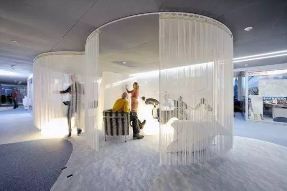 拼湊在一起的白色隔板,輕柔有質(zhì)感的隔斷展現(xiàn)出來。