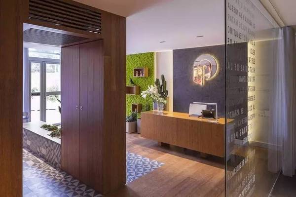 辦公室是建立在一個(gè)室內(nèi)的庭院之中的,雖然辦公空間是圍繞著室內(nèi)的小花園的,但事實(shí)上,室內(nèi)的設(shè)計(jì)與其說是辦公室倒更像是圍繞著小花園的休息和活動(dòng)空間。種植著綠色植物的露天小花園中擺放著用以休息閑聊的簡單的家具,綠色是這里的主題,而用以分隔小花園和辦公空間的既不是堅(jiān)實(shí)的墻壁,也不是活動(dòng)的玻璃門,設(shè)計(jì)團(tuán)隊(duì)選用了落地窗來包圍這個(gè)公司員工每天都在使用的戶外小空間,以此創(chuàng)造了室內(nèi)外空間的連續(xù)性。