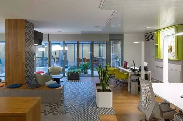 相較于小花園中的綠意,室內(nèi)則使用了更多暖色在輕松寫意的基礎(chǔ)上又增添了一筆柔和溫馨的感覺。主要的工作空間是開放式的,這樣能夠讓各個(gè)部門之間更好的協(xié)作溝通。其中使用的材料以木材為主,木質(zhì)地板和木質(zhì)柱子的顏色搭配著白色、橙色和黃色的辦公桌、座椅和坐墊,再輔以綠色植物的點(diǎn)綴,溫馨的氛圍勝過了辦公室。這樣的設(shè)計(jì)會(huì)帶給員工們不同以往的工作體驗(yàn),如家般愜意舒適的空間會(huì)讓員工的工作熱忱和效率都得到提高。