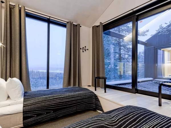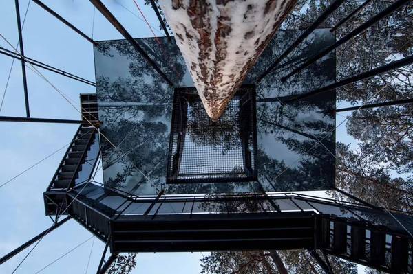 睡在星空中的樹(shù)屋-七間套房坐落在高高的瑞典北部的松林中。每個(gè)房間都有一二間臥室,約55平方米左右,客人可在樹(shù)屋圍合的空間里,躺在樹(shù)間的網(wǎng)上仰望星空,樹(shù)屋模糊了室內(nèi)和室外的生活之間的界限,將森林度假提升到了更高的高度。