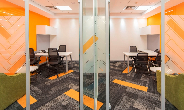 不同的人有不同的工作習慣,辦公室裝修時,不要試圖強迫員工屈從于鋼性的辦公環(huán)境,使用不同設(shè)備盡量滿足的員工的需求。高靠背與前沿傘狀遮陽椅,高聳的隔音罩桌臺,移動的沙發(fā)便于小組進行一些討論,使員工保持積極、主動、自由的工作狀態(tài)。設(shè)計師運用無限的創(chuàng)造力和元素,不管是布局規(guī)劃還是總體的空間建設(shè),都離脫離不來了格子框架,通過大量的格子框架來體現(xiàn)空間強大的存儲功能,也是為了節(jié)省空間
