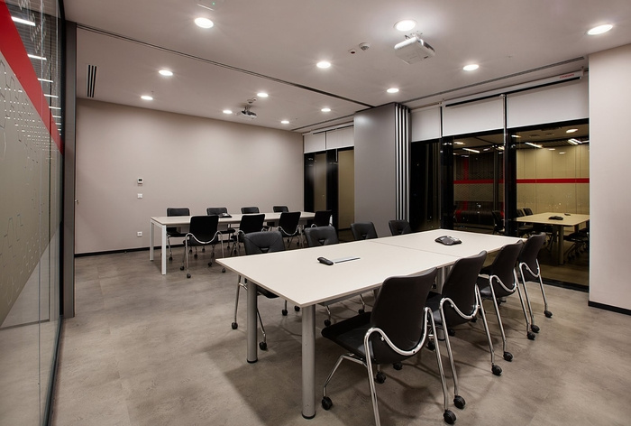 2、其次在上海辦公室設(shè)計(jì)時(shí),會(huì)議室常常被傳統(tǒng)的分割成單獨(dú)房間,然而有時(shí)候因?yàn)楣镜娜藬?shù)原因無法進(jìn)行統(tǒng)一的大會(huì),但若是規(guī)劃了大型會(huì)議室就又會(huì)導(dǎo)致會(huì)議室數(shù)量減少?gòu)亩褂貌槐?。針?duì)于這種情況在辦公室裝修時(shí)規(guī)劃出一個(gè)大會(huì)議室,然后使用活動(dòng)隔斷將其分開,當(dāng)需要多人統(tǒng)一開會(huì)時(shí)便可以將活動(dòng)隔斷打開增加會(huì)議室面積。這樣不僅節(jié)省空間也能使空間更為靈活。